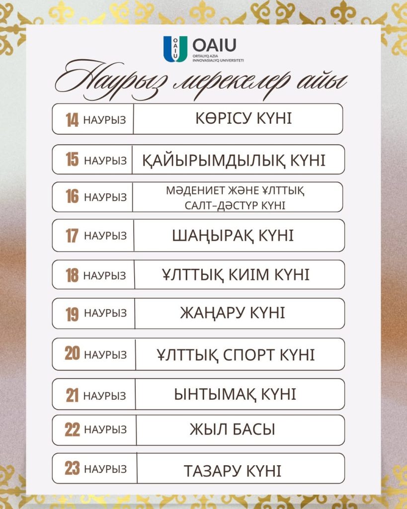 НАУРЫЗ — месяц обновления и добра. OAIU Объявление 0 89 19/03/2026 С праздником всех вас Наурыз, приносящий благополучие и единство! 🌿✨ Share this Post